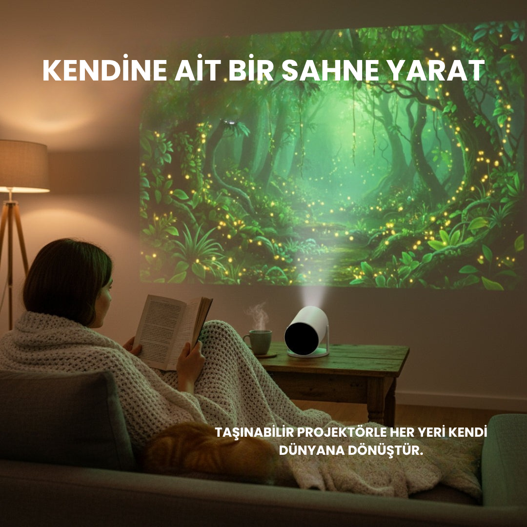 Taşınabilir projektör ile duvarınızda 4K manzaralar, doğa ve rahatlatıcı görüntüler her an sizinle.